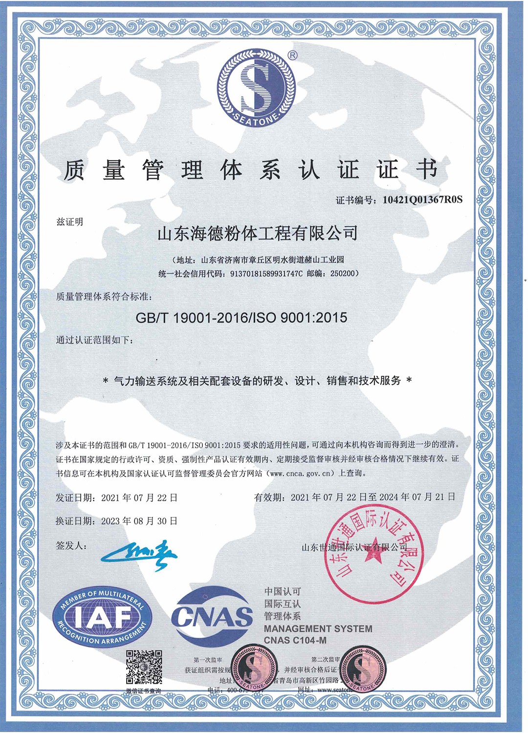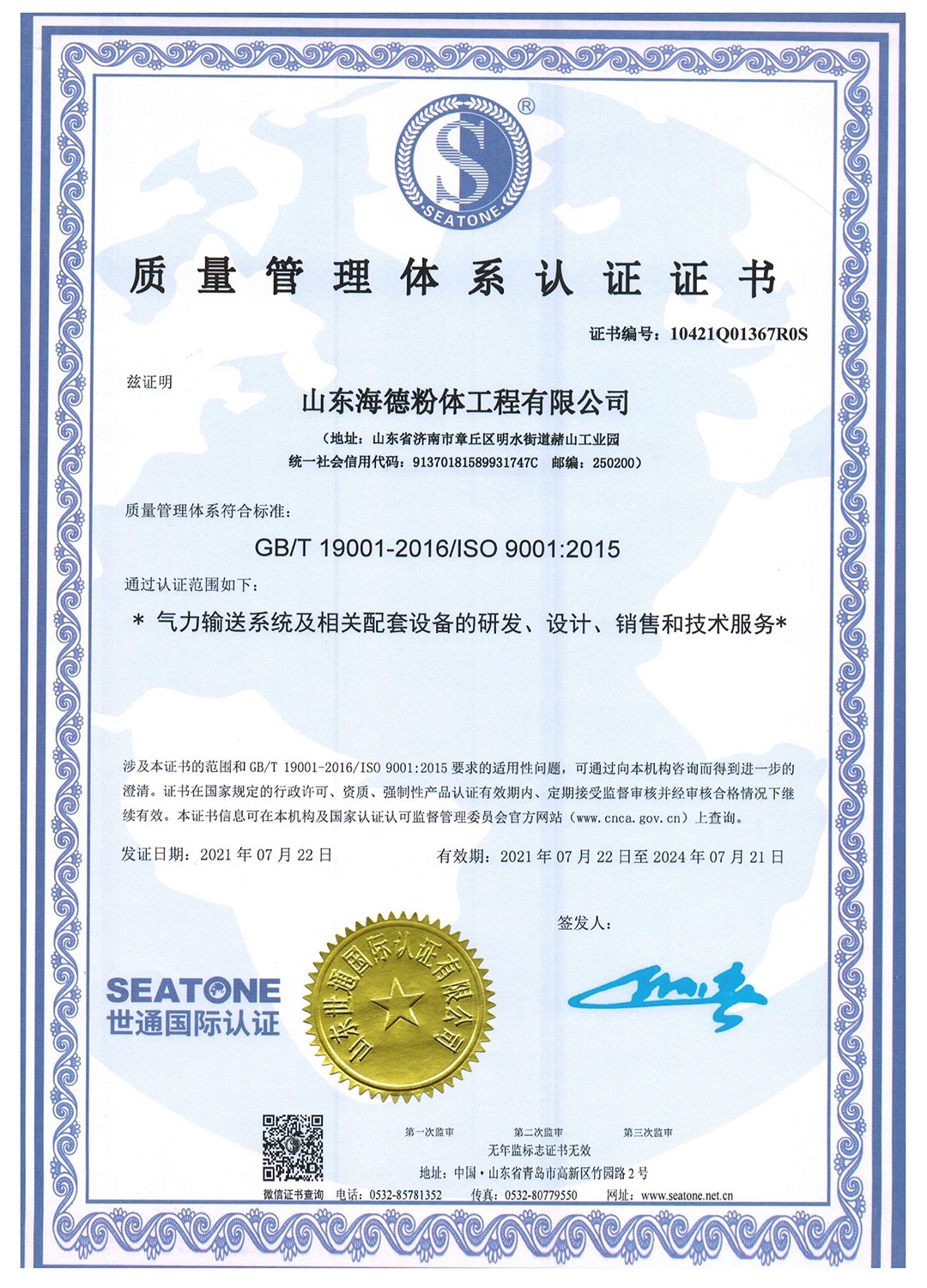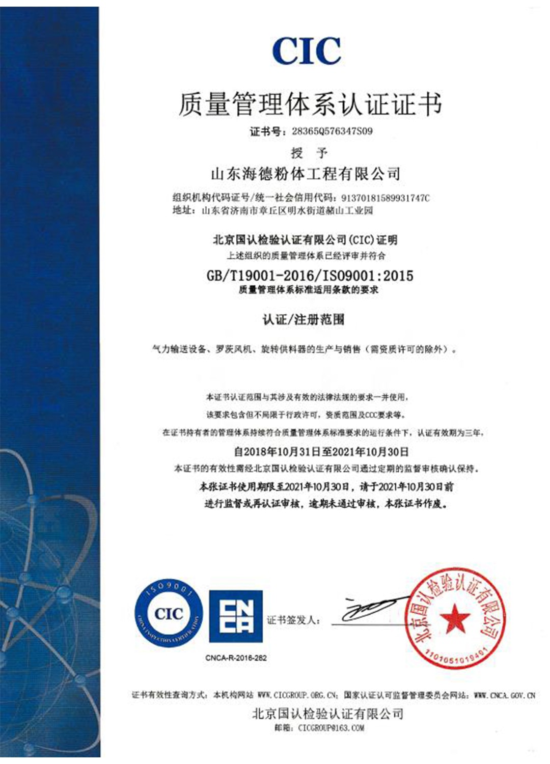 山東海德粉體工程有限公司是一家專業(yè)從事粉、粒料氣力輸送及處理的專業(yè)化工程公司,公司通過了:IS09001質(zhì)量體系認證、ISO14001環(huán)境體系認證、 ISO45001職業(yè)健康安全管理體系認證。經(jīng)過多年發(fā)展,公司已經(jīng)成為集方案設(shè)計、科研開發(fā)、設(shè)備制造、自動化控制、安裝調(diào)試等相關(guān)技術(shù)服務(wù)于一體的系統(tǒng)集成供應(yīng)商。